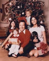 Andy Williams and Claimed Longet with their children Noelle, Christian and Bobby, and Barnaby the dog in an early 1970’s Christmas special. Although separated in 1970, Claudine and the kids continued to appear on Andy’s shows.